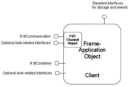 | Up to FDT Specification 2.1 FDT Overview 2.2 Where FDT Fits 2.3 General FDT Architecture and Components 2.4 Overview of Objects and Interfaces 2.4.1 The Device Type Manager (DTM) 2.4.2 The Block Type Manager (BTM) 2.4.3 The FDT Frame Application 2.5 Synchronization and Serialization Issues 2.6 Parameter interchange via XML 2.6.1 Examples of usage 2.7 Persistent Storage Story 2.7.1 Persistence Overview 2.7.2 Persistence Interfaces 2.8 Basic features of a session model 2.9 Basic Operation phases 2.9.1 Roles and Access Rights 2.9.2 Operation Phases 2.10 Abstract FDT Object Model 2.11 Fieldbus independent Integration 2.12 Scanning and DTM Assignment | 2.4.3 The FDT Frame ApplicationThe FDT Frame Application provides the complete functionality to manage data, to communicate with the device and to embed DTMs. So it depends on the environment and the tasks whether a Frame Application is an engineering tool, a standalone tool or a web page. A DTM must be independent of the environment it is running in. So all environment-specific tasks must be handled by the Frame Application. In most cases, engineering tools are based on Database Management Systems (RDBMS, OODBMS). Due to this, no DTM should implement transaction strategies. It depends on the data management of each Frame Application whether transactions are used or not. All aspects of data management are encapsulated within the Frame Application. It is not a matter of any DTM. The standard storage interfaces encapsulate the storage mechanism of the Frame Application. This can be a simple file system or in case of engineering tool the database provided by the DCS system manufacturer. The data a DTM stores via this interfaces are DTM-specific and are not available for other applications. It is up to the DTM which data it stores but each DTM has to guarantee that it can represent each stored device instance by loading these data