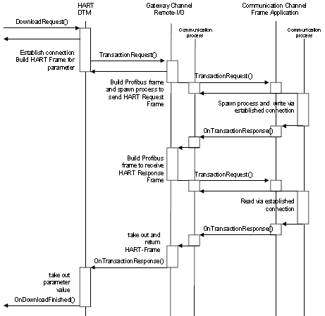 Used methods: IFdtCommunication::TransactionRequest() IFdtCommunicationEvents::OnTransactionResponse() IDtmOnlineParameter::DownloadRequest() IDtmEvents::OnDownloadFinished()