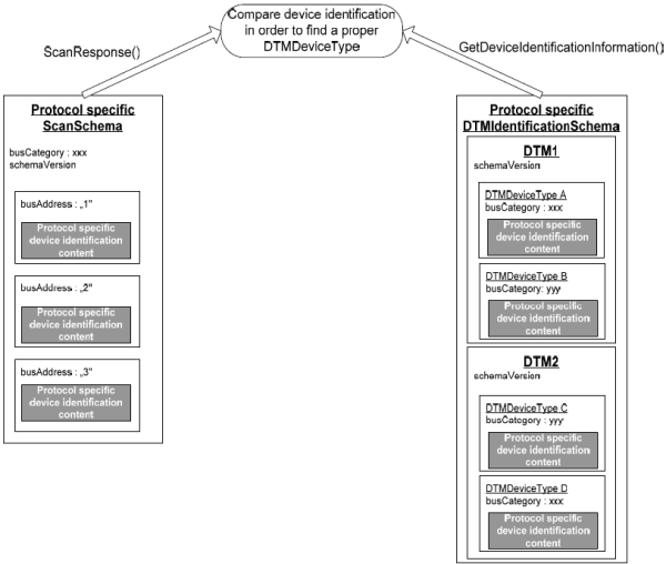 | Up to 4 FDT Interface Specification 4.10.8.1 Device Identification 4.10.8.2 Protocol Specific Transformation Style Sheet (xsl) 4.10.8.3 Semantic Identification Information 4.10.8.4 Device Assignment 4.10.8.5 Regular Expression Specification | 4.10.8.1 Device Identification